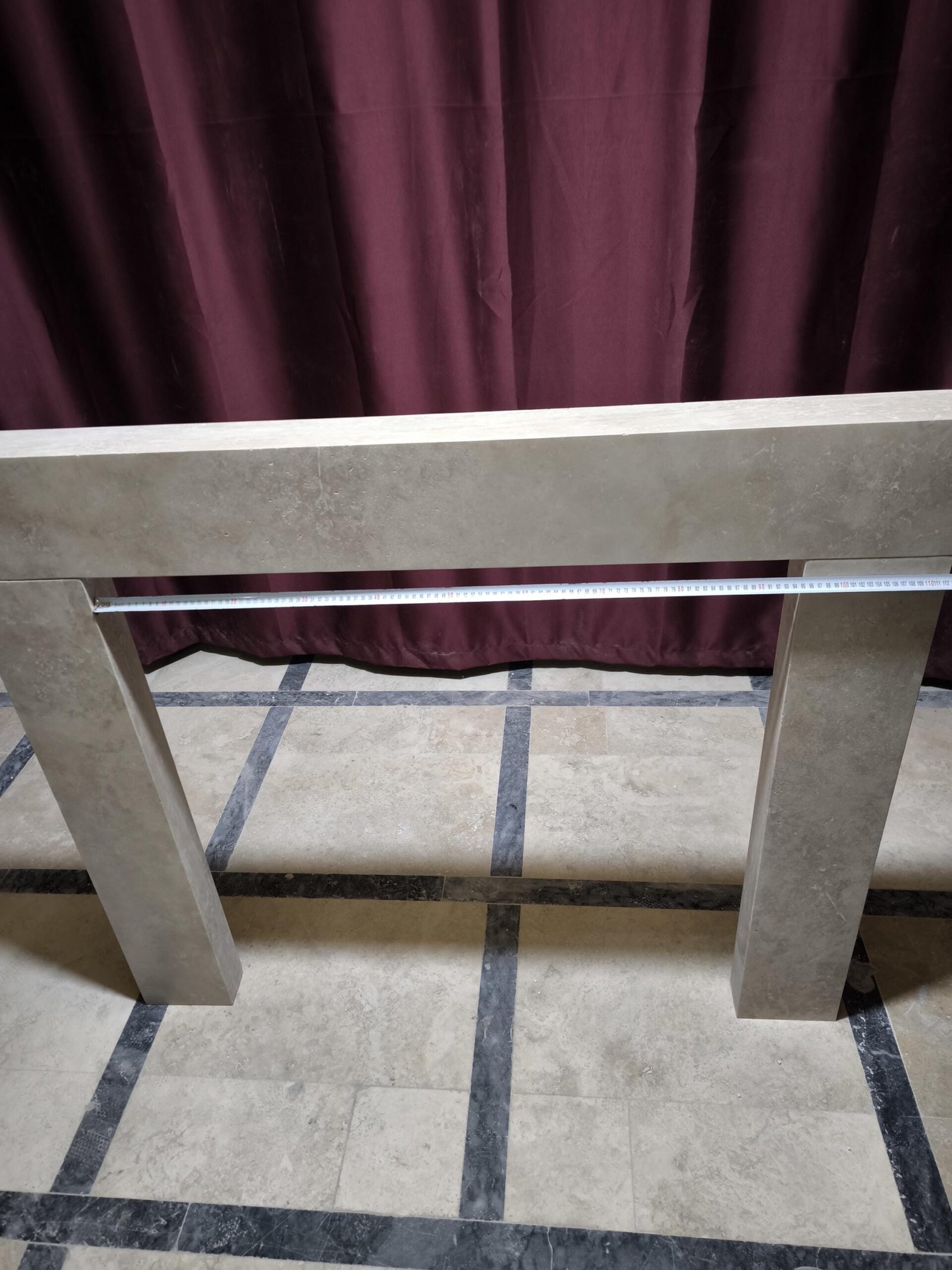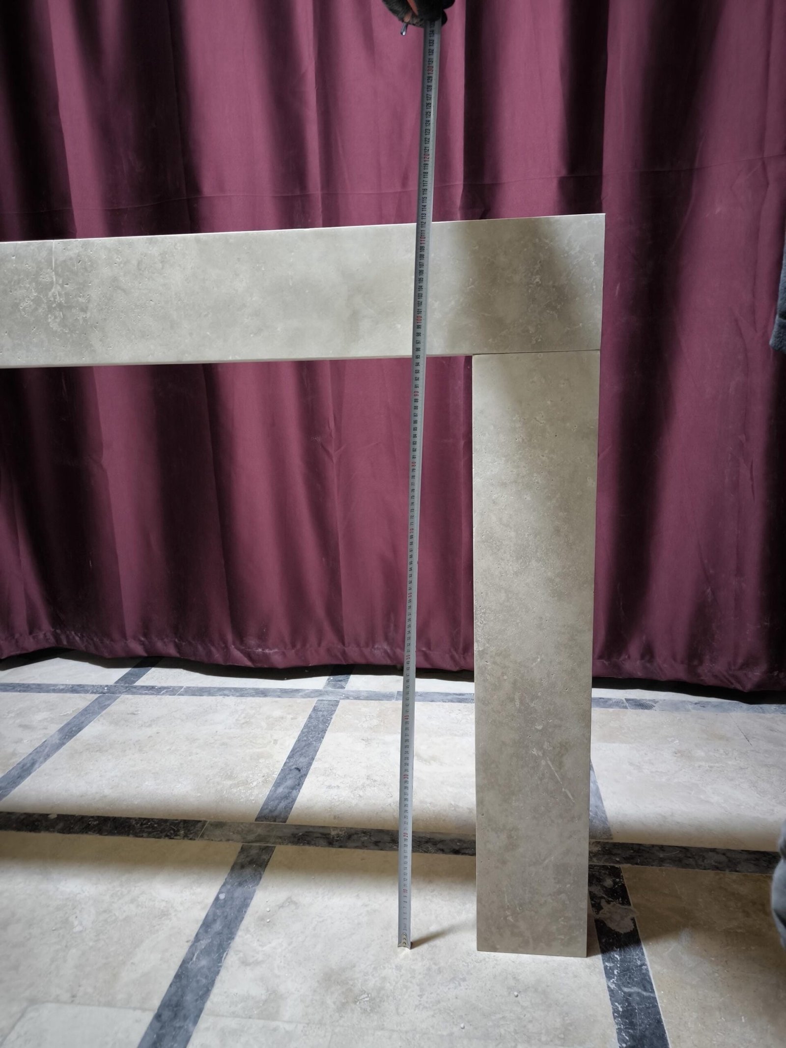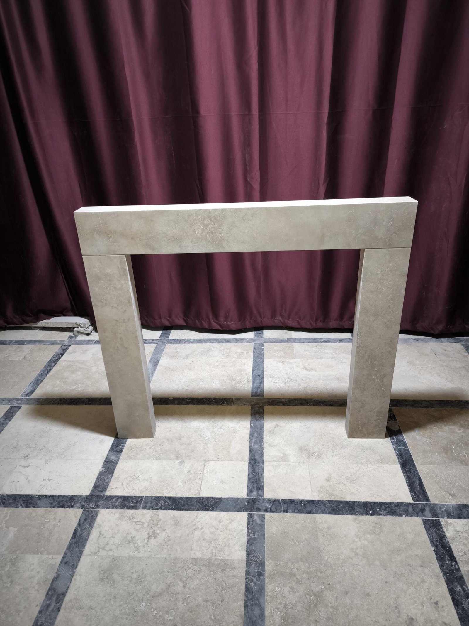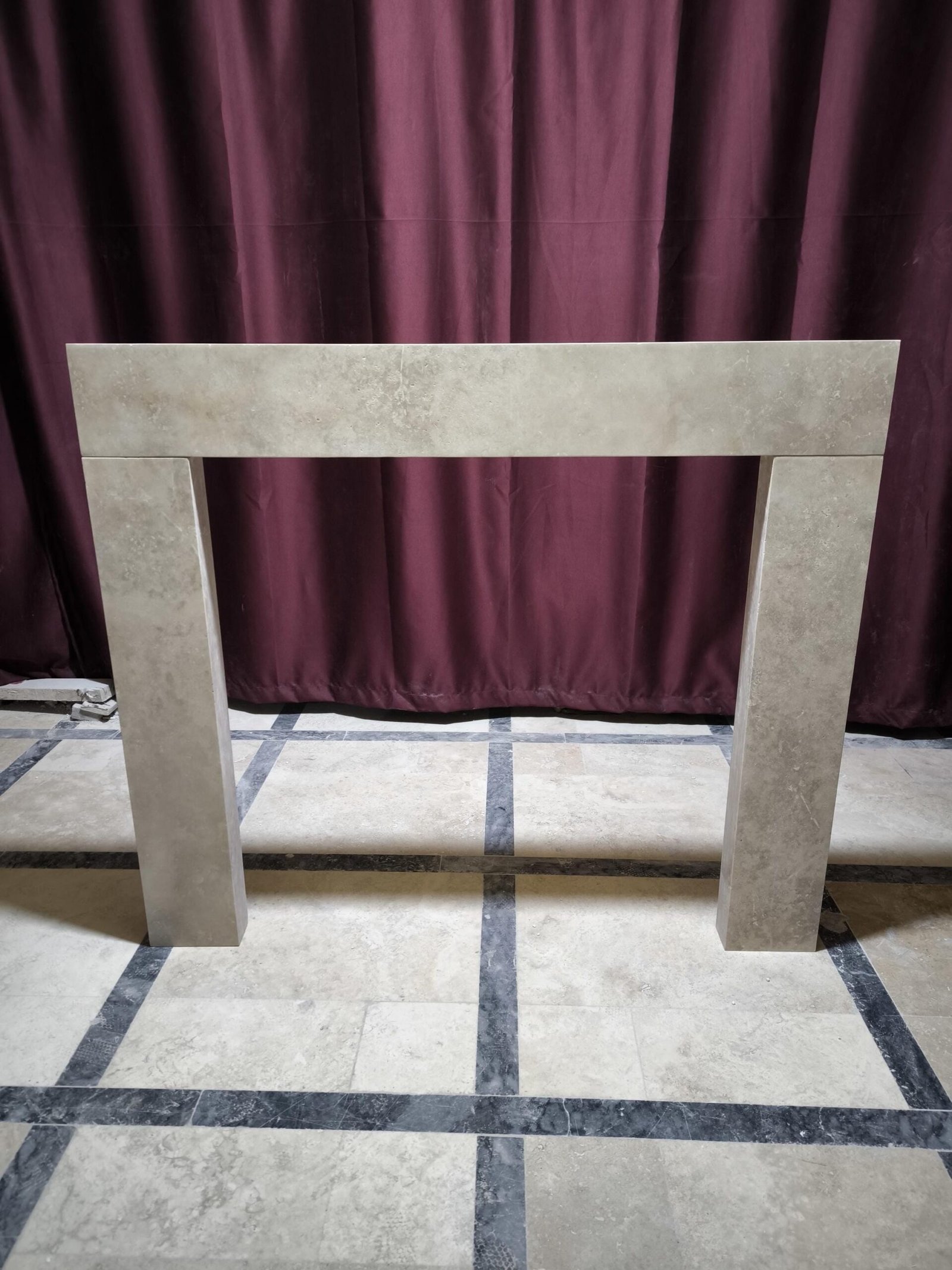 Sculpted in natural travertine with a smooth honed surface, this architectural fireplace surround becomes the quiet centerpiece of a refined interior. With outer dimensions of 130x112x17 cm and a stone thickness of 10 cm, it blends organic warmth with sleek linearity for modern and classic settings alike.