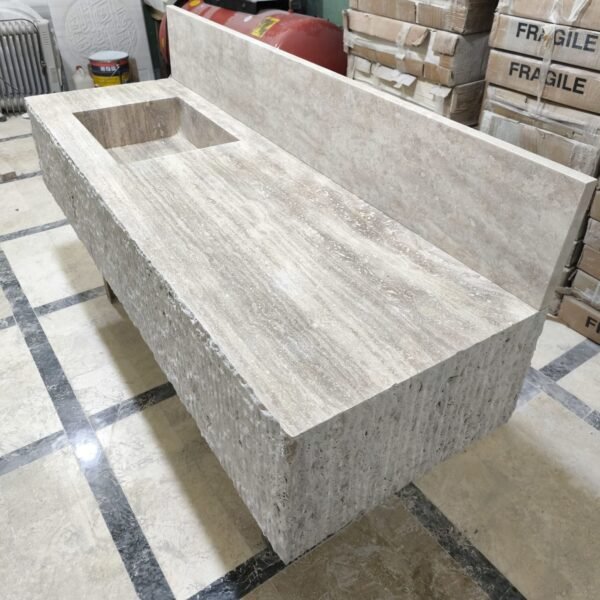 Transform your bathroom into a sanctuary of luxury with our 66″ Travertine Marble Sink — a handcrafted natural stone masterpiece designed for both impact and function. With its integrated backsplash and generous dimensions (22″ x 66″ x 12″), this piece is perfect for large vanities, modern renovations, or spa-inspired designs.