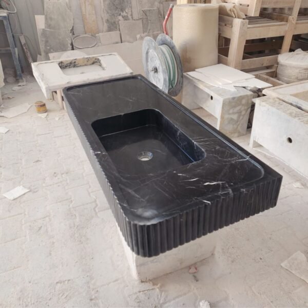 Be the first to review “Nero Marquina Marble Sink: Fluted Front, Wall Mounted Vanity”