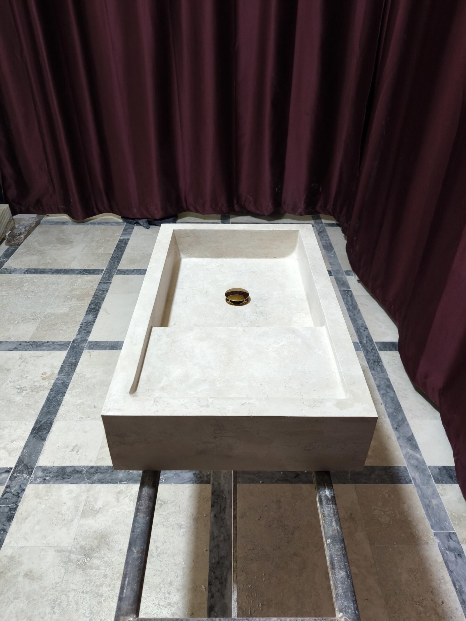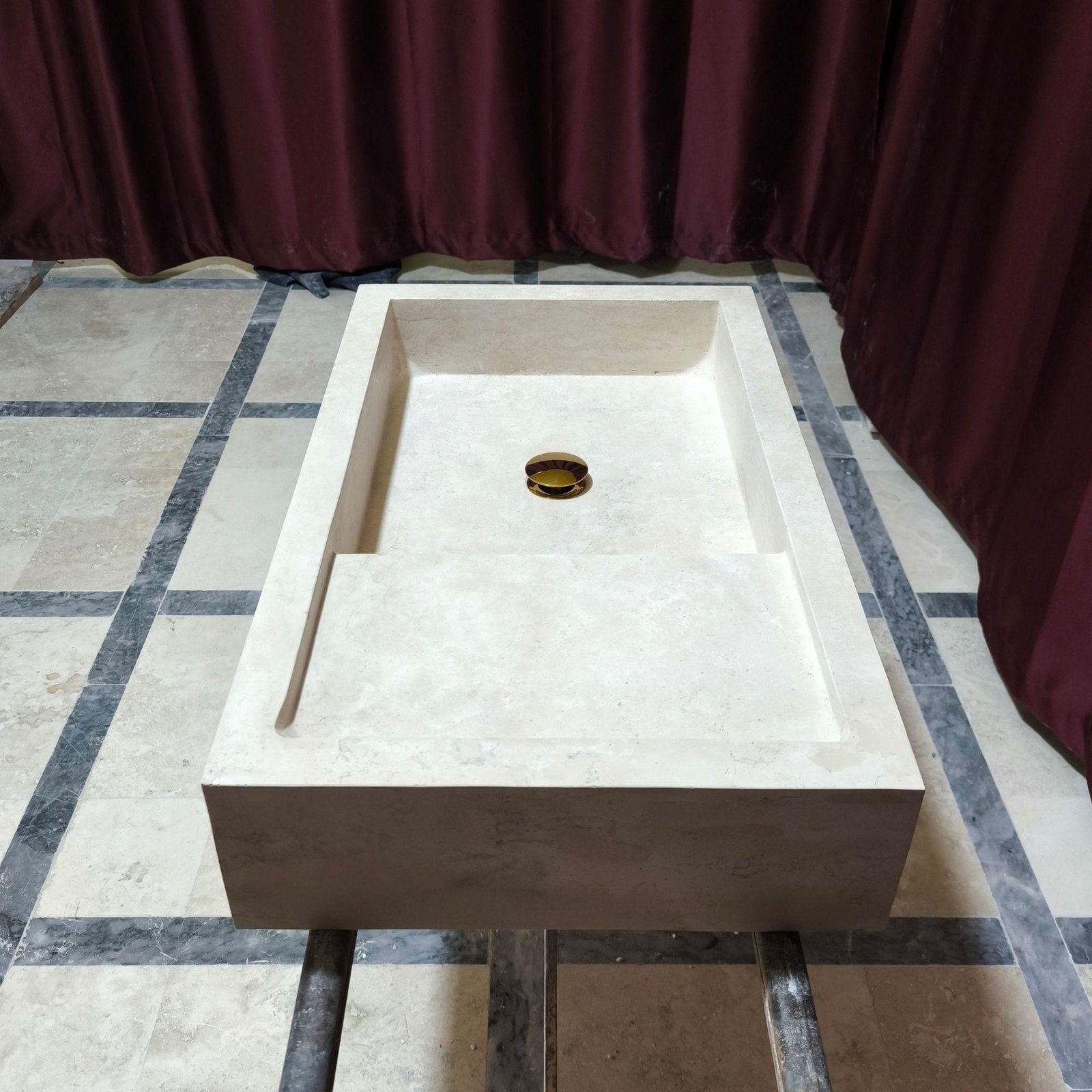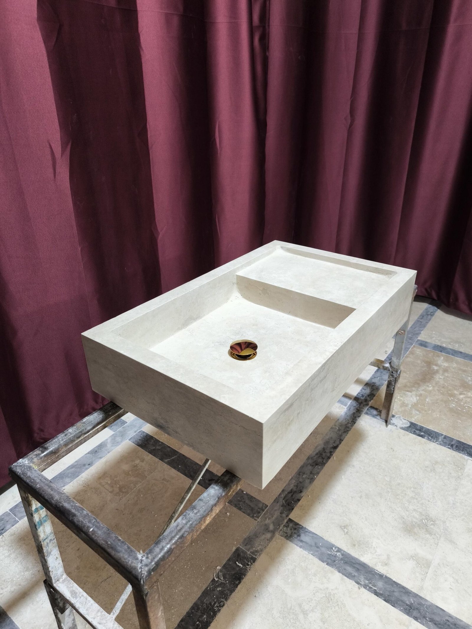 ✔️ Sculpted from a single travertine block