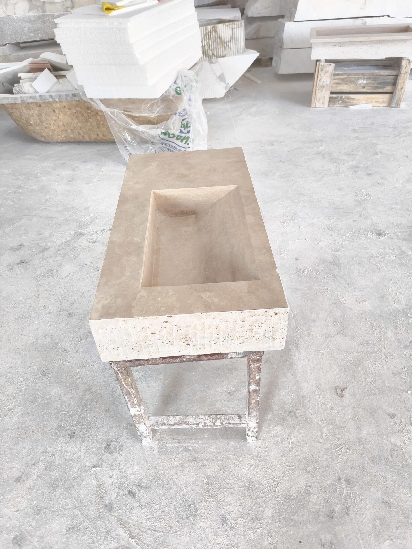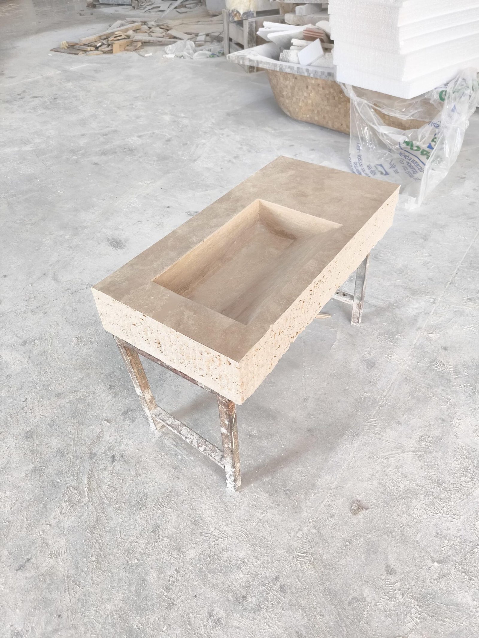 Travertine Stone Sink: Handcrafted Rectangular Bathroom Basin, Minimalist Vanity