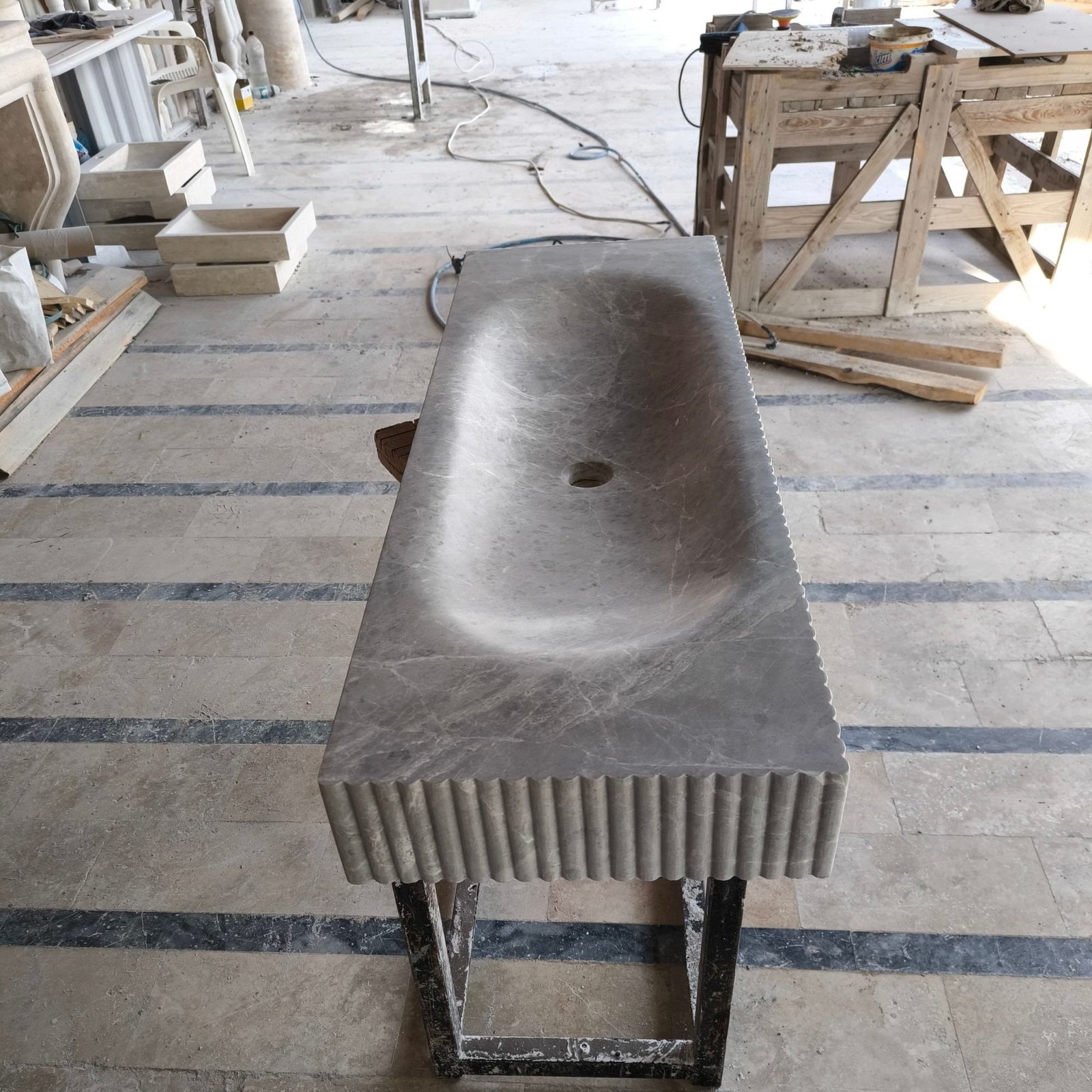 Transform your bathroom with the exquisite elegance of our Tundra Gray Marble Sink. Order now to experience the unparalleled beauty and quality of handcrafted marble!