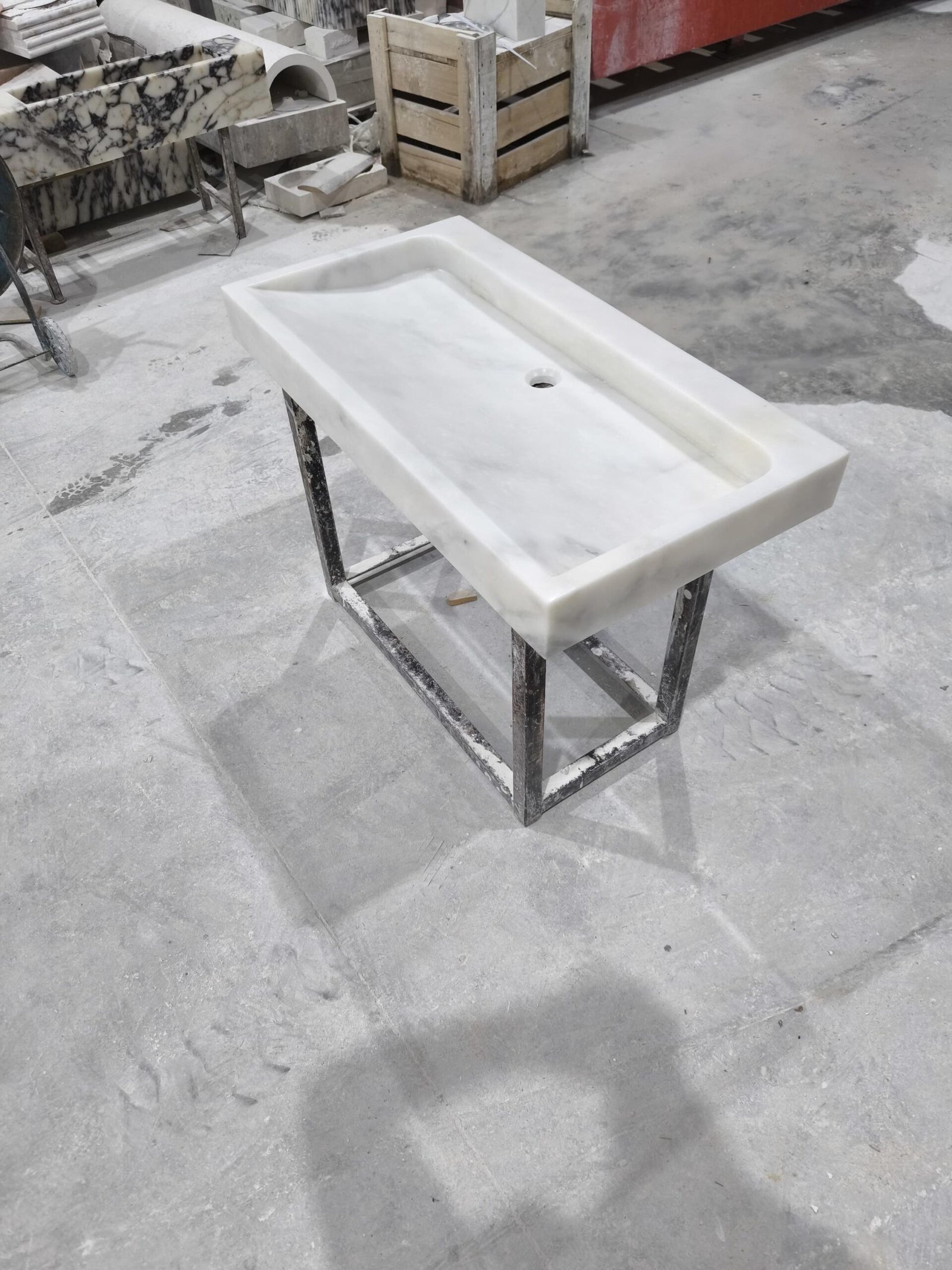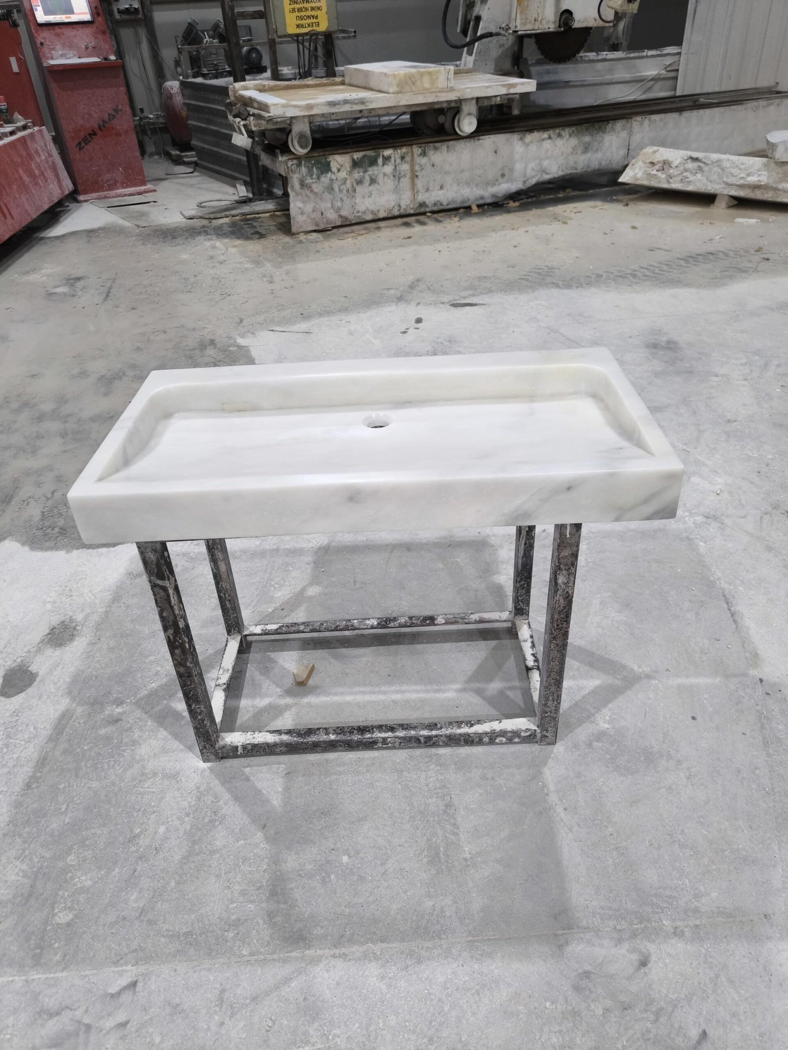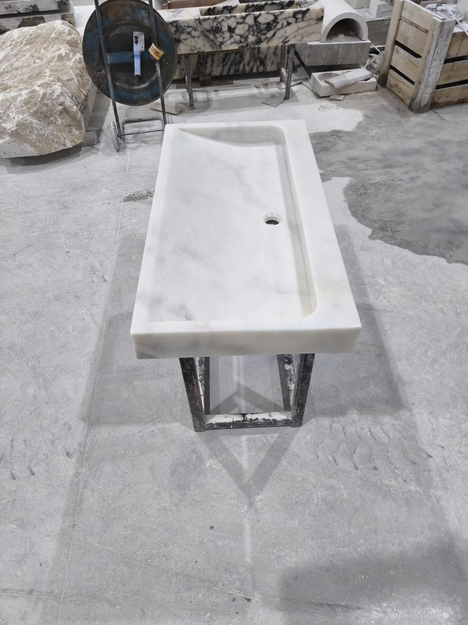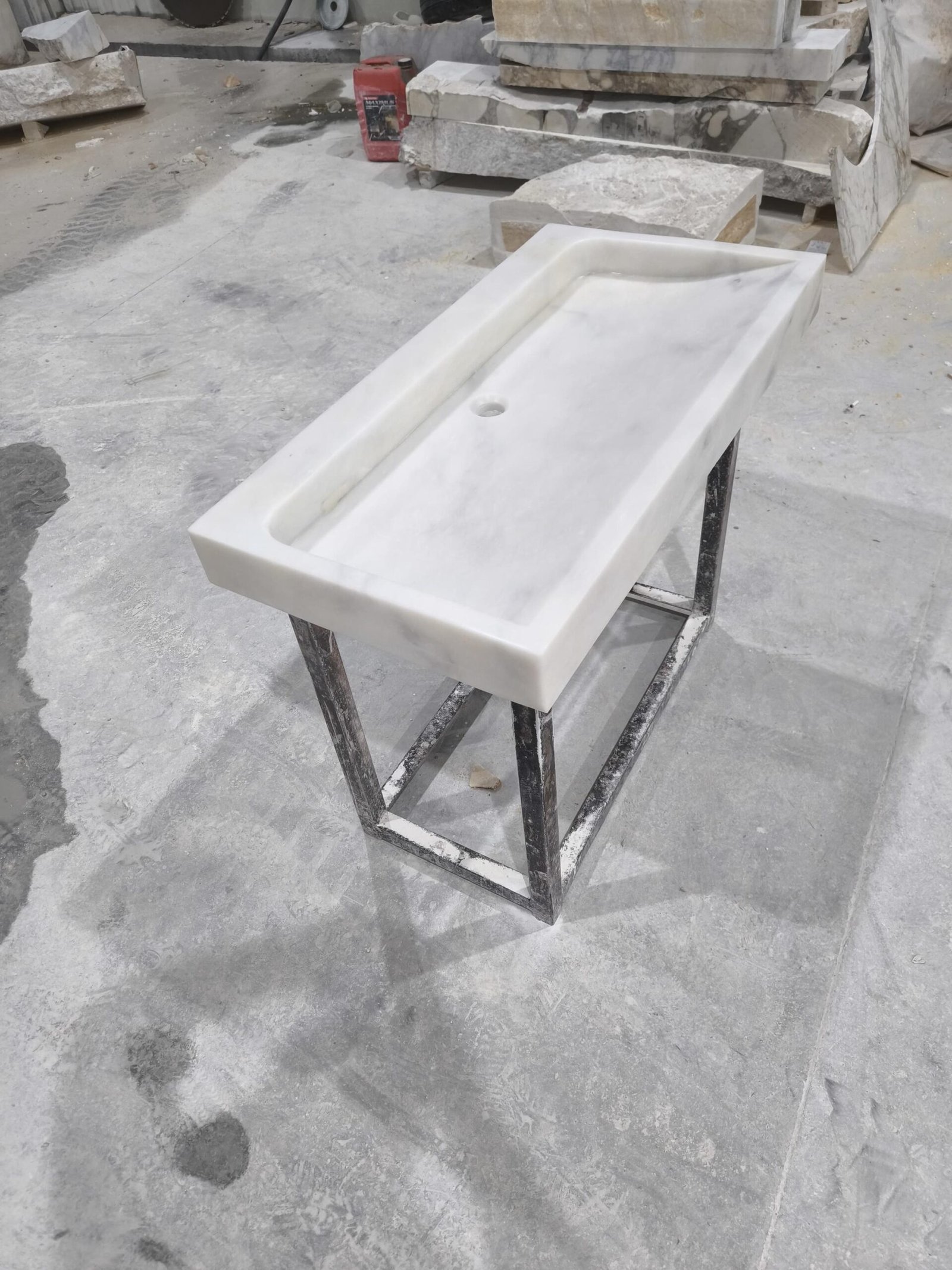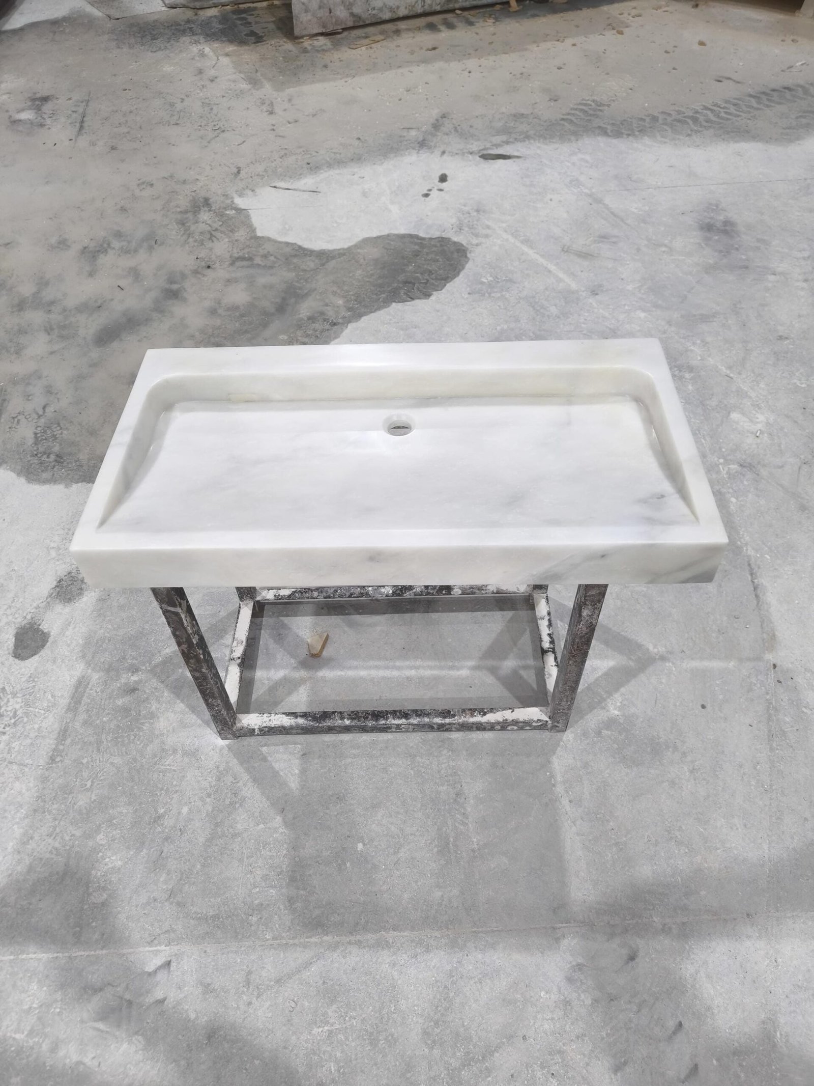 Designed for the modern minimalist, this handcrafted white marble sink blends sculptural precision with understated elegance. Measuring 18 x 35 x 4 inches, the elongated design offers a seamless, spa-like experience perfect for contemporary homes, studios, and boutique interiors.