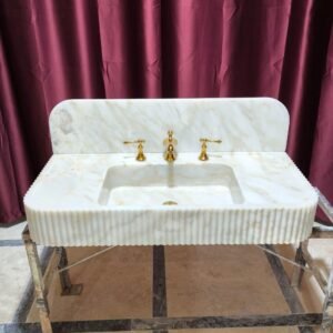 Calacatta Gold Marble Sink: Fluted Stone Vanity with Backsplash